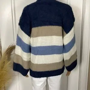 This cardigan features beautiful color blocks and 3/4 sleeves.