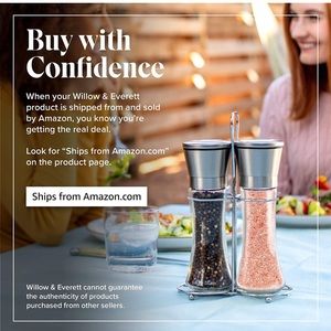 Willow & Everett Salt and Pepper Grinder Set - Stainless Steel Refillable Salt & Peppercorn Shakers