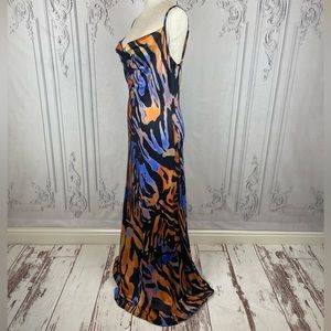 Elevate your style in this alluring and sexy tiger print maxi. Both figure-flattering and fierce, this is the ultimate wardrobe trophy piece. This technicolor psychedelic dream of a dress perfectly captures the spirit of adventure and is extremely fun to wear.
