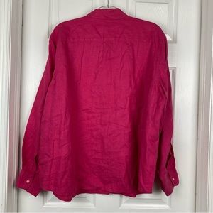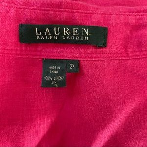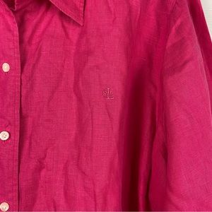 Lauren Ralph Lauren 100% Linen Button-Down, Roll-Tab Sleeve Shirt in Pink.