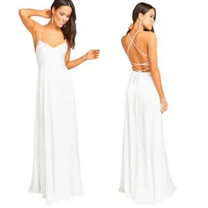 Reposhing this item I purchased from @deannaonline. Loved it, but too long and big on me. (I am 62 inches tall) The sillhouette is flattering for any body shape, and the open back with straps is elegant and chic. Perfect dress for tall people.