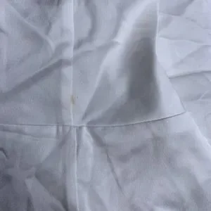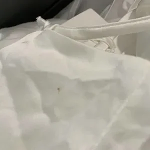 Was a display item in a boutique + still has its tags. Has some minor stains (shown in photos) from being on display (The dress has not been washed yet, so the stains might be able to come out). It is wrinkled + needs ironing/dry cleaning.
