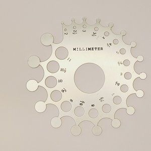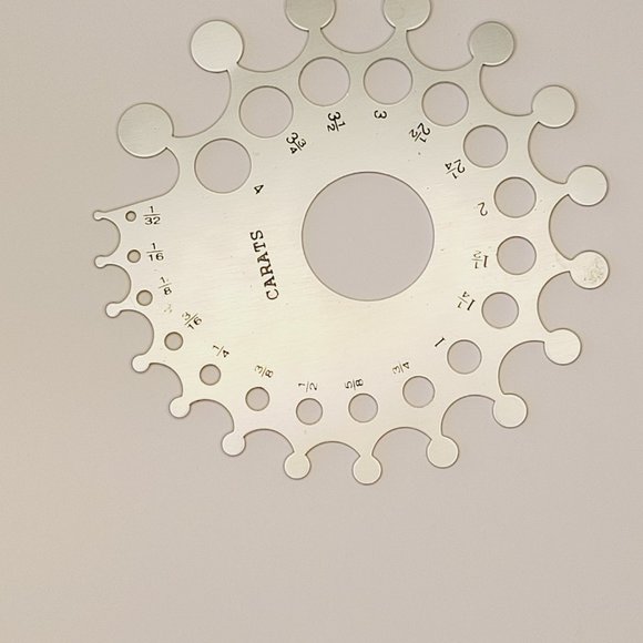 Metal gauge to measure carats or mm of diamonds and gemstones.
