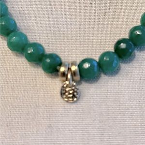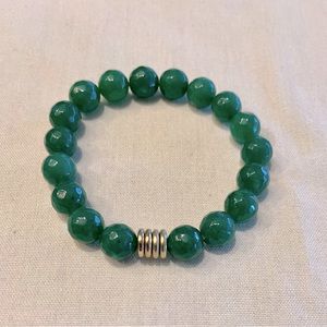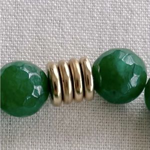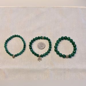 Just in time for St. Patrick’s Day, this beautiful set of 3 handcrafted jade, round octagon beaded bracelets are trimmed with gold plated detail.