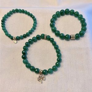 Set of 3 Jade Bracelets with Gold “Tree of Life” Charm
