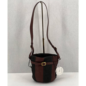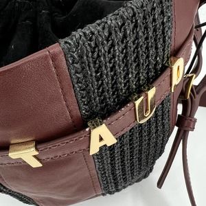 STAUD Handbag Womens Brown Cabana Raffia and Leather Shoulder Bucket Bag NWT