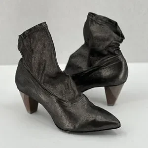 COCLICO Shoes Womens 37 Gray Metallic Juno Boot Stretch Anthracite Scrunch