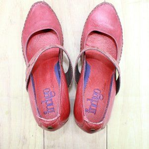 Indigo Clarks Red Leather Moccasin Toe Mary Jane Pump Heel Shoes Size 8 Medium