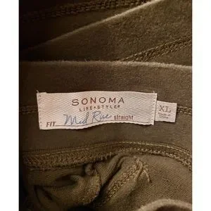 Sonoma Cargo Pants. 100% Cotton - Size XL. Measurements: Waist 40"/Length 39"/Inseam 27". Some nubbing in the material. Can be worn as pants or capris. The material has stretch. The waistband is elastic.