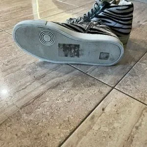 P488 black & silver sneakers size 39 which is size 9 Gently used