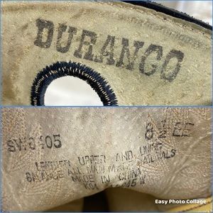 Durango Leather Cowboy Boots - two toned black and brown leather, stitching outside detail, easy pull on with portholes.