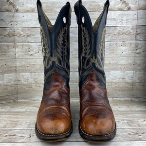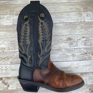 Durango Cowboy Black & Brown Pull On Leather Boots- Mens size 8.5 EE