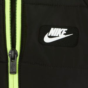 The Nike Snowsuit provides an outer layer of lightweight insulation to help little ones stay warm when the temperature drops. Fold-over mittens and a hood offer extra coverage.