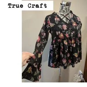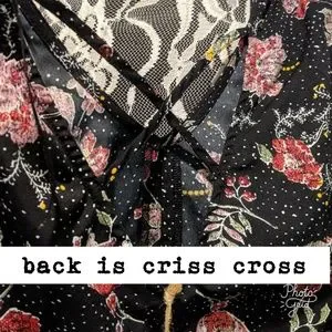 Black floral with criss cross in back....size XS....Bell sleeves....See pics for details