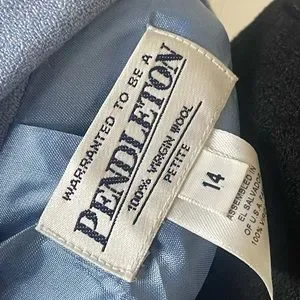 Pendleton Petite 2 Button 100% Wool Blazer Size 14P. There are two small holes on the back hardly noticeable please see pictures