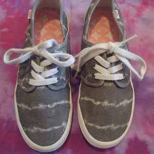 Grey and white tie dyed pattern ROXY sneakers. Super comfy!