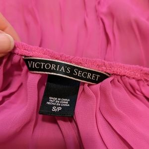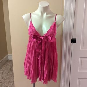 Victoria Secret bright pink sheer lace and crinkle baby doll lingerie size Small