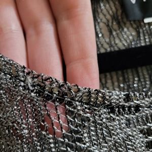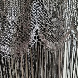 Vintage Virgo Brand Silver Knit Crochet Style Fringe Crop Top Blouse
