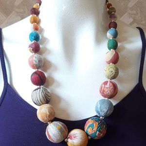 Kantha Graduated Bead Necklace (each jewelry piece is designed with repurposed Kantha textile, colors and patterns will vary)