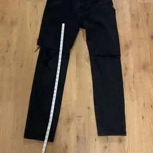 Black high waisted jeans with distressed slashed knee