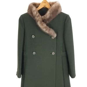 Vtg Lord & Taylor Coat Women's S? Faux Fur Collar Green Lined Retro Look