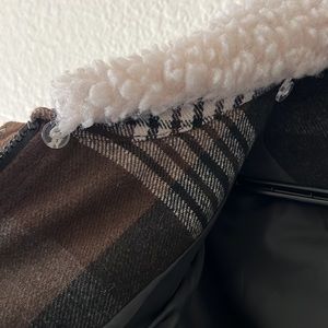 - plaid print with sherpa collar lining which is detachable