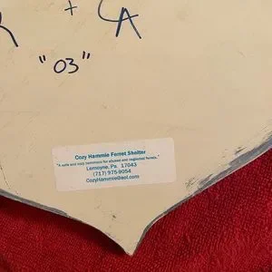 Handmade wooden plaque from 2003, originally sold to raise funds for Cozy Hammock Ferret Shelter.