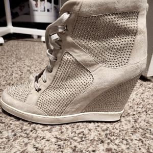 beautiful oyster color jimmy choo wedge sneakers are very comfortable they are in very good condition and are ideal to give a chic touch to your outfits you will not regret having them in your life All purchases are final, no changes or returns are accepted
