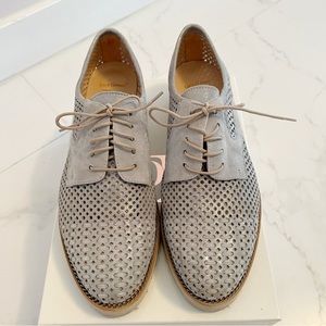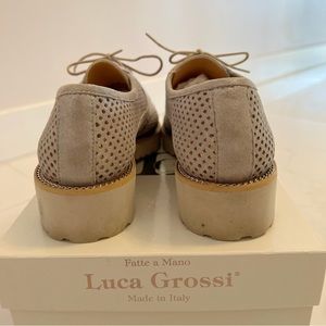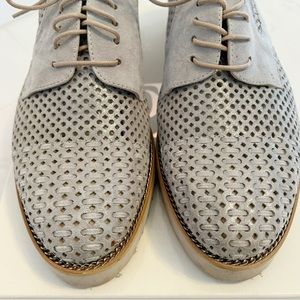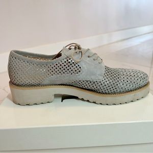 ITALIAN Luca Grossi Sparkly Gray Suede Silver Lace-Up Shoes