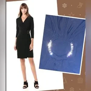 Glamour Party Dress 4P Faux Wrap stretchy gathered side rhinestone’s buckle