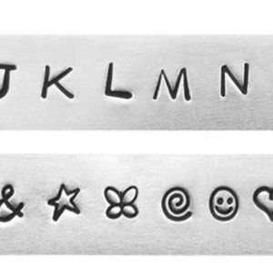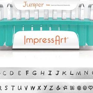 Bold, hand-written look of ImpressArt’s Juniper letter stamp set. Clear and easy to read, this is a great typeface for beginner crafters. The included set of doodled shapes add a whimsical touch to your stamped jewelry and craft pieces.