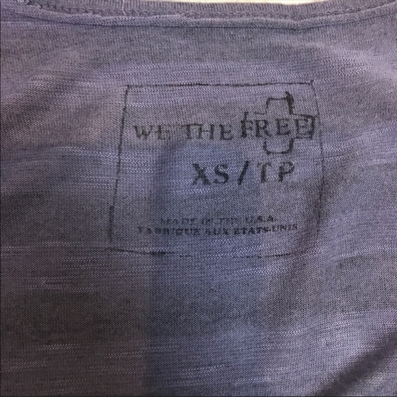 I love this shirt!! I wore it a couple times, but it is in excellent condition! EUC. It is a Free People/We The Free long sleeve purple striped oversized shirt. It is an XSmall. Even a Small would fit into this just fine because of the fact it's oversized. I took a picture of the hem so you can see it's supposed to look that way. Almost as if it was cut. It doesn't curl though, or unravel.