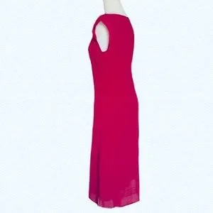 🌟An absolutely captivating piece to add to your spring-summer wardrobe, this midi dress commands attention in vibrant magenta while keeping things fresh and light in sheer Viscose. Beautifully defined through the waist, the dress continues to flatter with a boat neckline, cup sleeves, and an invisible zipper down the center back.