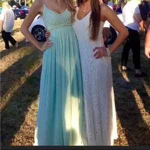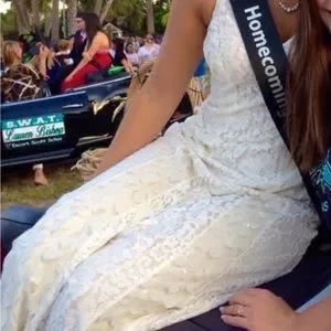 CHAMPAGNE & STRAWBERRY WHITE LACE DRESS SIZE SMALL
