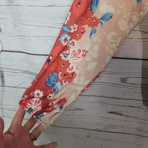 Boutique Gray Floral Sleeve Boho Waffle Knit V-Neck Pullover Sweater Woman Small. Pre-owned