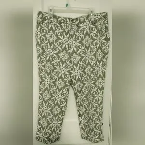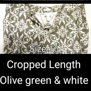 Olive Green Print Crop Pants sz 16