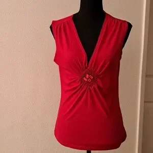 Bring a little blingctovyour game with this red decorative tshirt in size Large. Hits all the right angles.