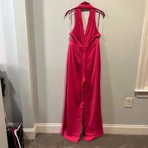This is the Holding On Flare Halter Jumpsuit in pink by DO+BE in size medium. This jumpsuit is brand new with tags! Thanks for looking!!
