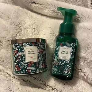 SOLD - Bath and Body Works Fresh Balsam 3 Wick Candle and Foaming Hand Soap