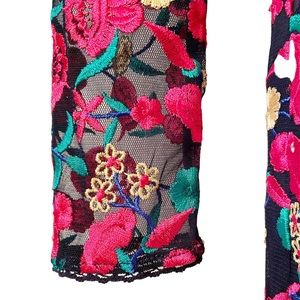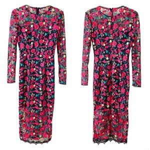 Dress the Population Sophia Embroidered Floral L Sleeve Bodycon Midi Dress XS