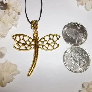 Large Gold Dragonfly Necklace Statement Gift Idea Big Adjustable Length NWT 7282