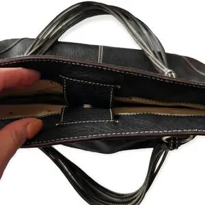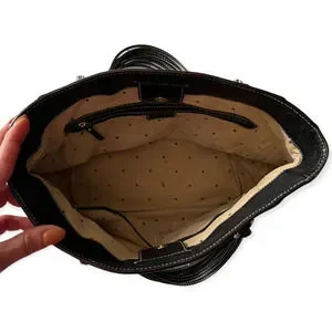 Kate Spade New York Black Pebbled Multi-Strand Handle Leather Shoulder Bag, Tote