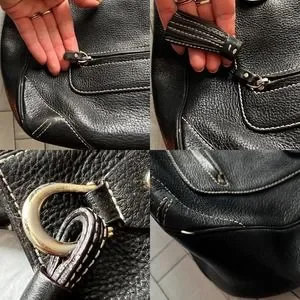 There is Some Staining of the Lining, the tassel zipper pull has come off, & the top layer of the metal on some, but not all of the hardware has lost some of its shine (see photos).