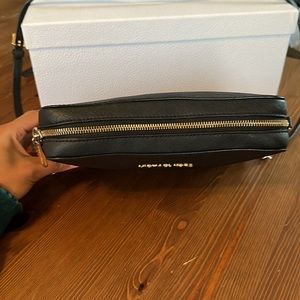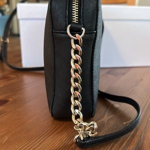 The perfect every day bag. That also looks great on a fun night out or a fancier little black dress moment. It’s black leather holds up super well, the strap is adjustable and has plenty of pockets on the inside.