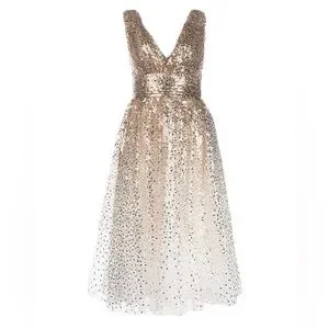 Gorgeous Sparkly Marchesa Notte Gold Sequin V Neck Midi Dress Size 4 NWT