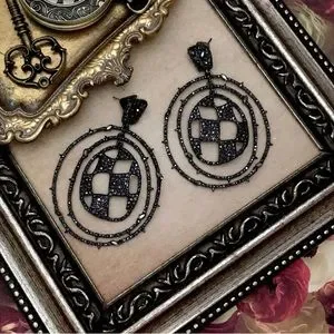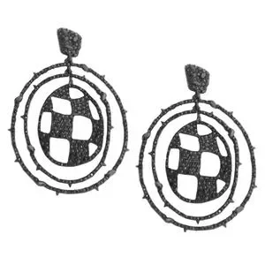 These finely crafted surrealist crystal checkerboard orbiting post earrings feature opulent crystal flourishes set in gunmetal tone to create an ethereal, edgy look inspired by 60s op-art.