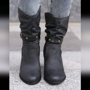 NEW Slouchy black buckle boots in a European size 43 (US 11)
