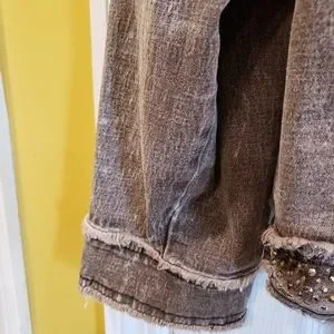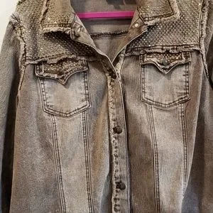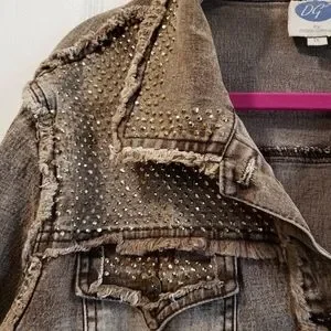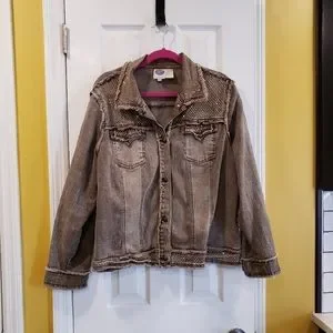 DG2 by Diane Gilman 1X brown jean jacket with being at waist and around collar