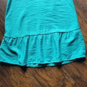 Mange Basics Womans Turquoise Scoop Neckline sleeveless Ruffle Dress Size 2