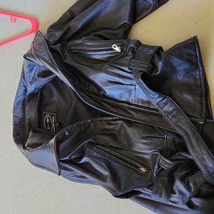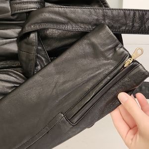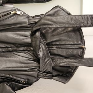 VINTAGE 80s style shoulder pad, belted Tannery West Women's Black Leather Jacket